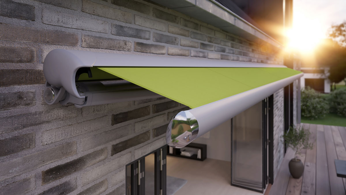 Die Optik einer Kassettenmarkise mit der Leichtigkeit der Halbkassette. Die rund geformte Schale bietet Schutz für das Markisentuch und lässt sich individuell anpassen.
